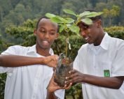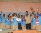 JUC staff presenting to Ntwari Sardoine the prize from African Jesuit AIDS Network at