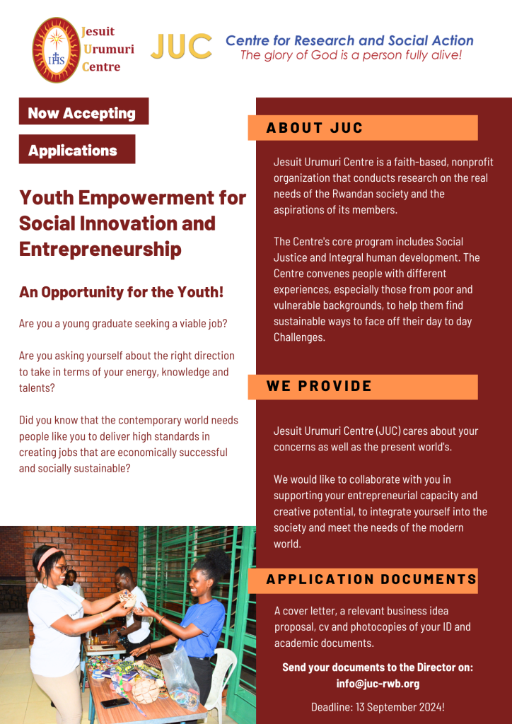 Jesuit Urumuri Centre is pleased to invite young men and women who have completed secondary education or tertiary education, for training on Entrepreneurship and Social Innovation.